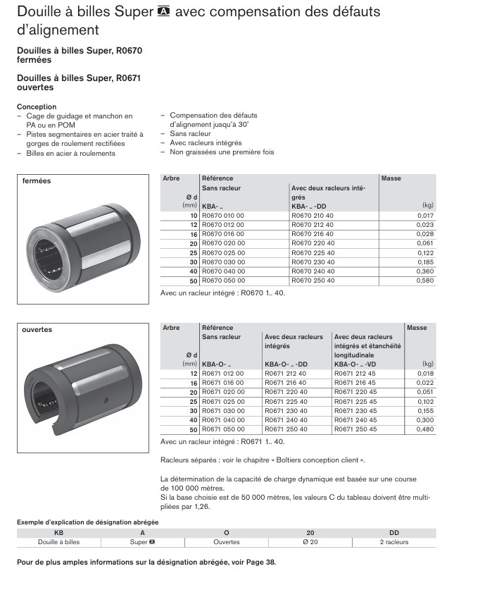 La douille à billes Super KBA-30 (R067003000) est un composant mécanique conçu pour les applications industrielles nécessitant précision, fiabilité et résistance dans le temps. Robuste et économique, elle constitue une solution idéale pour optimiser le guidage linéaire dans de nombreux systèmes mécaniques. Grâce à sa conception avancée, la Super KBA-30 assure un fonctionnement fluide et autonome. Son système d’auto-alignement permet de compenser les légères déviations de l’arbre et les défauts d’alignement pouvant aller jusqu’à 30°, limitant ainsi les contraintes mécaniques et l’usure prématurée des composants. Compacte et simple à intégrer, cette douille à billes s’adapte parfaitement aux équipements exigeant à la fois précision, robustesse et tolérance aux imperfections d’alignement. Elle est particulièrement adaptée aux systèmes de guidage linéaire, machines-outils, convoyeurs et à de nombreux montages mécaniques industriels.