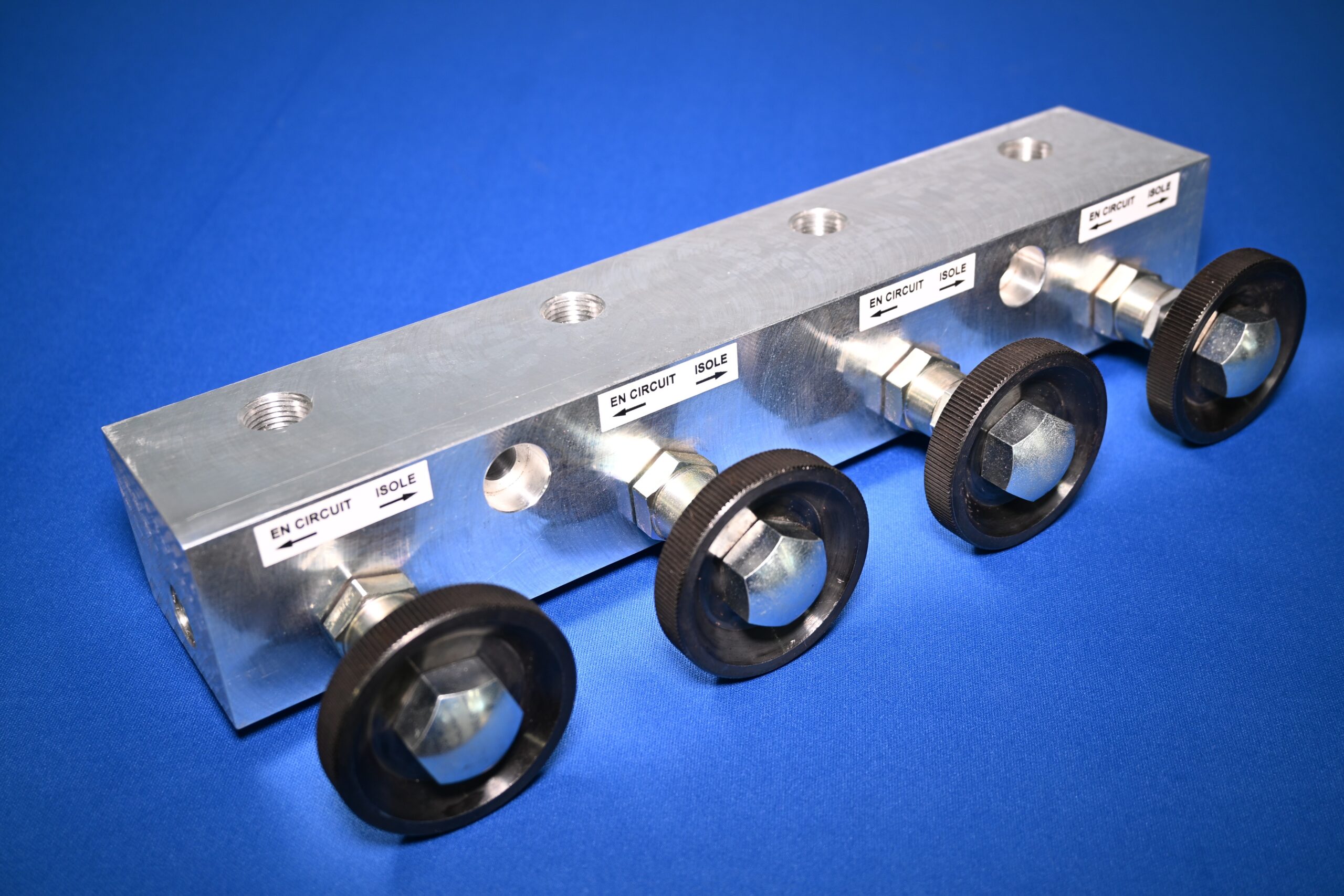 La nourrice d’isolement est un dispositif de distribution hydraulique conçu pour alimenter plusieurs vérins à partir d’un ou de deux orifices d’alimentation.