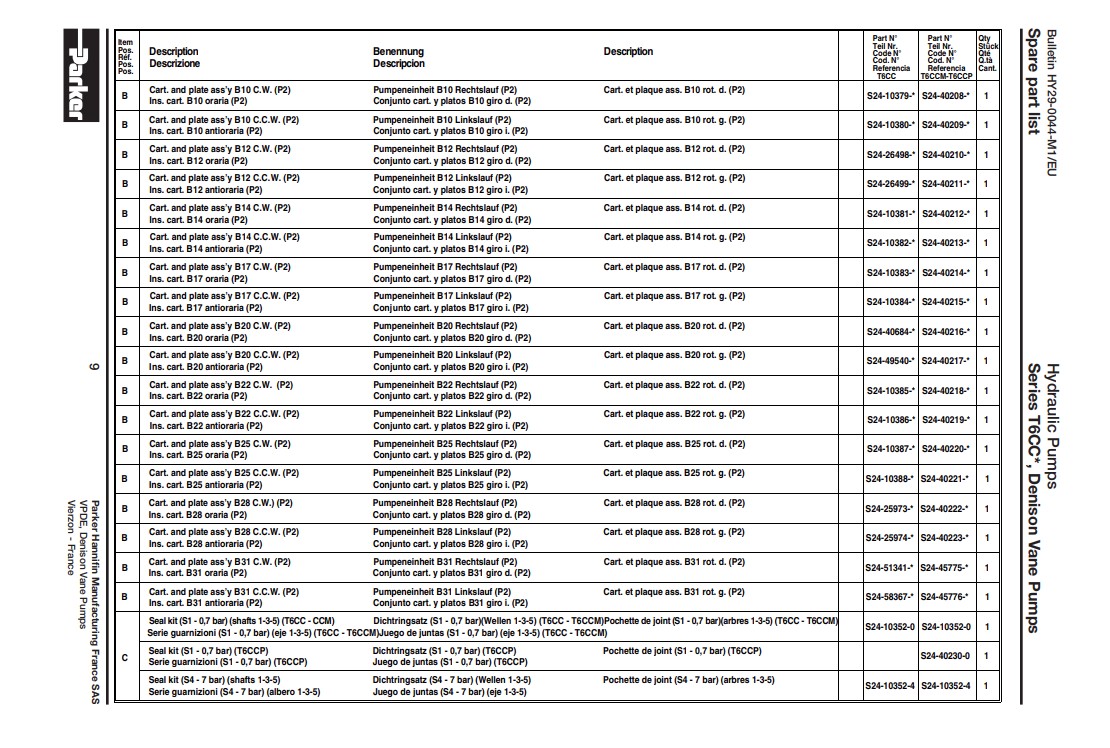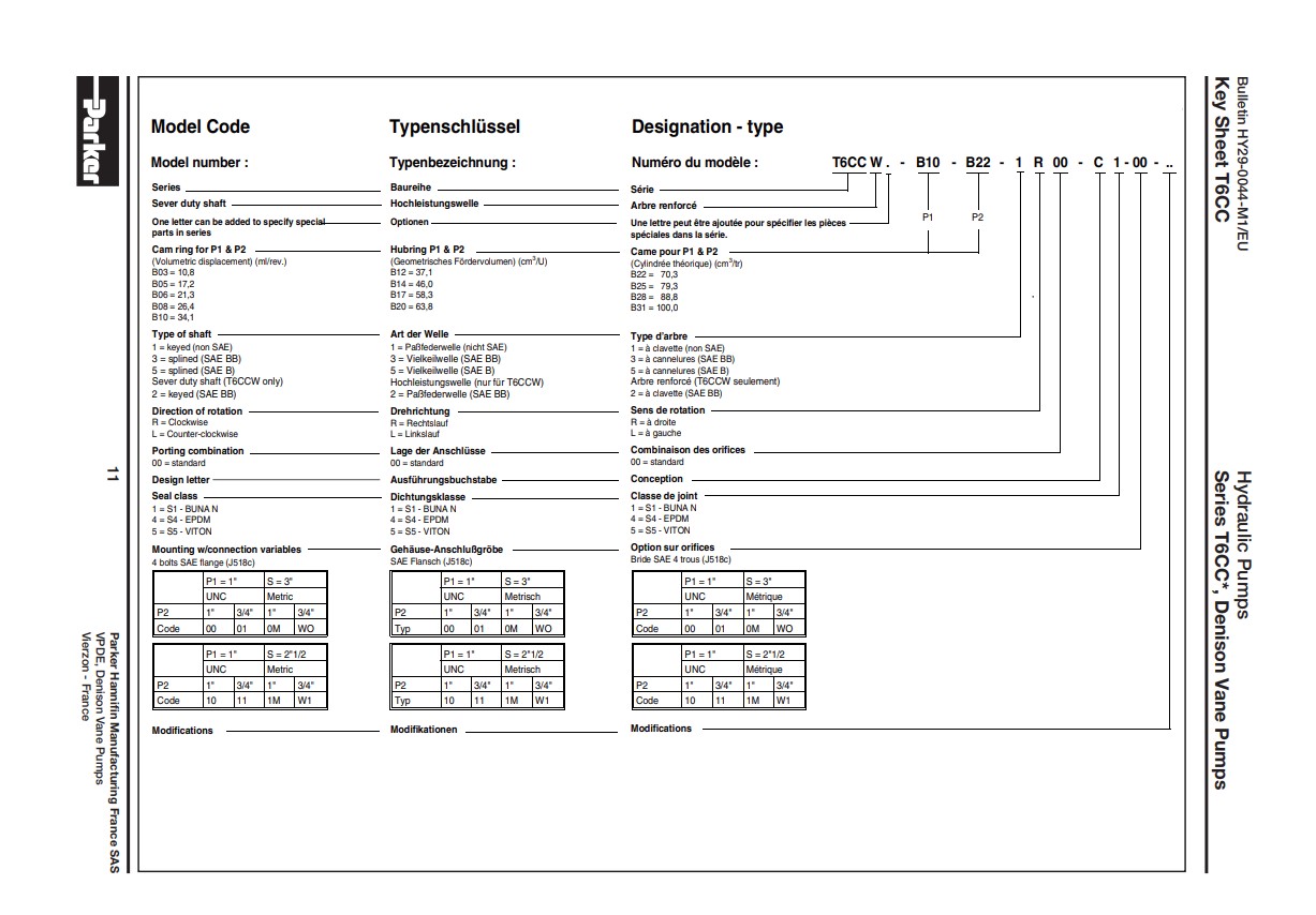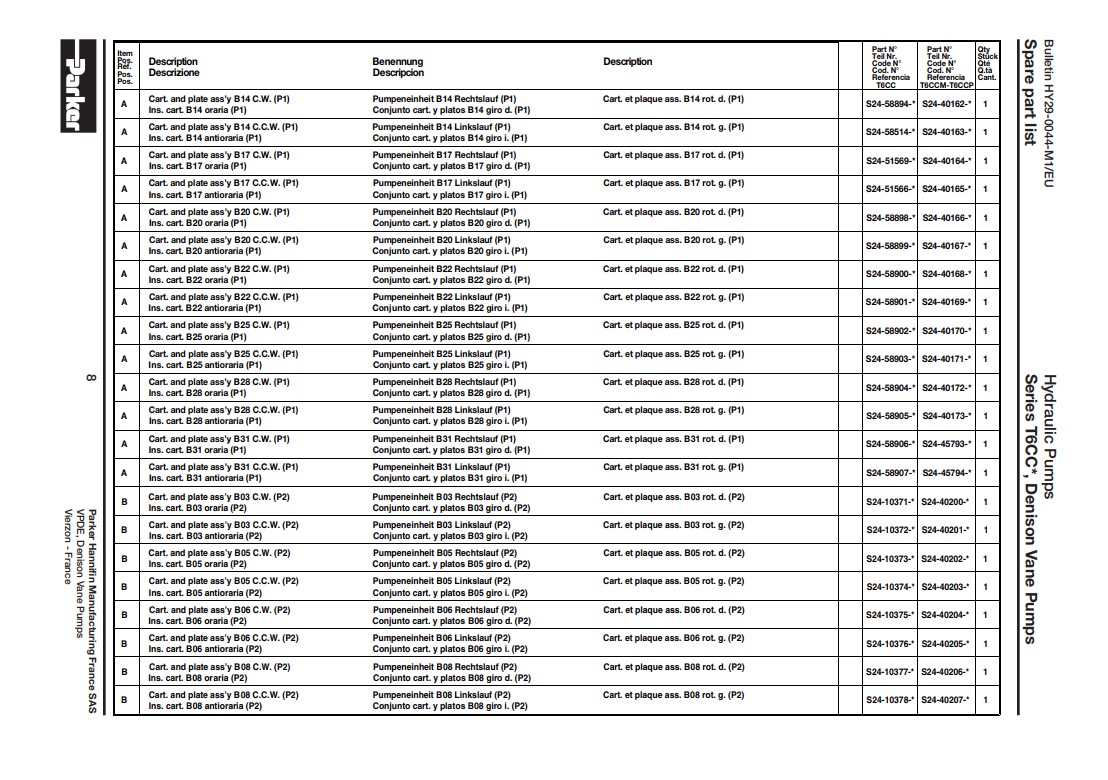 - Remplaçable par : Parker T6CC B 14 B06 1R03 C111
